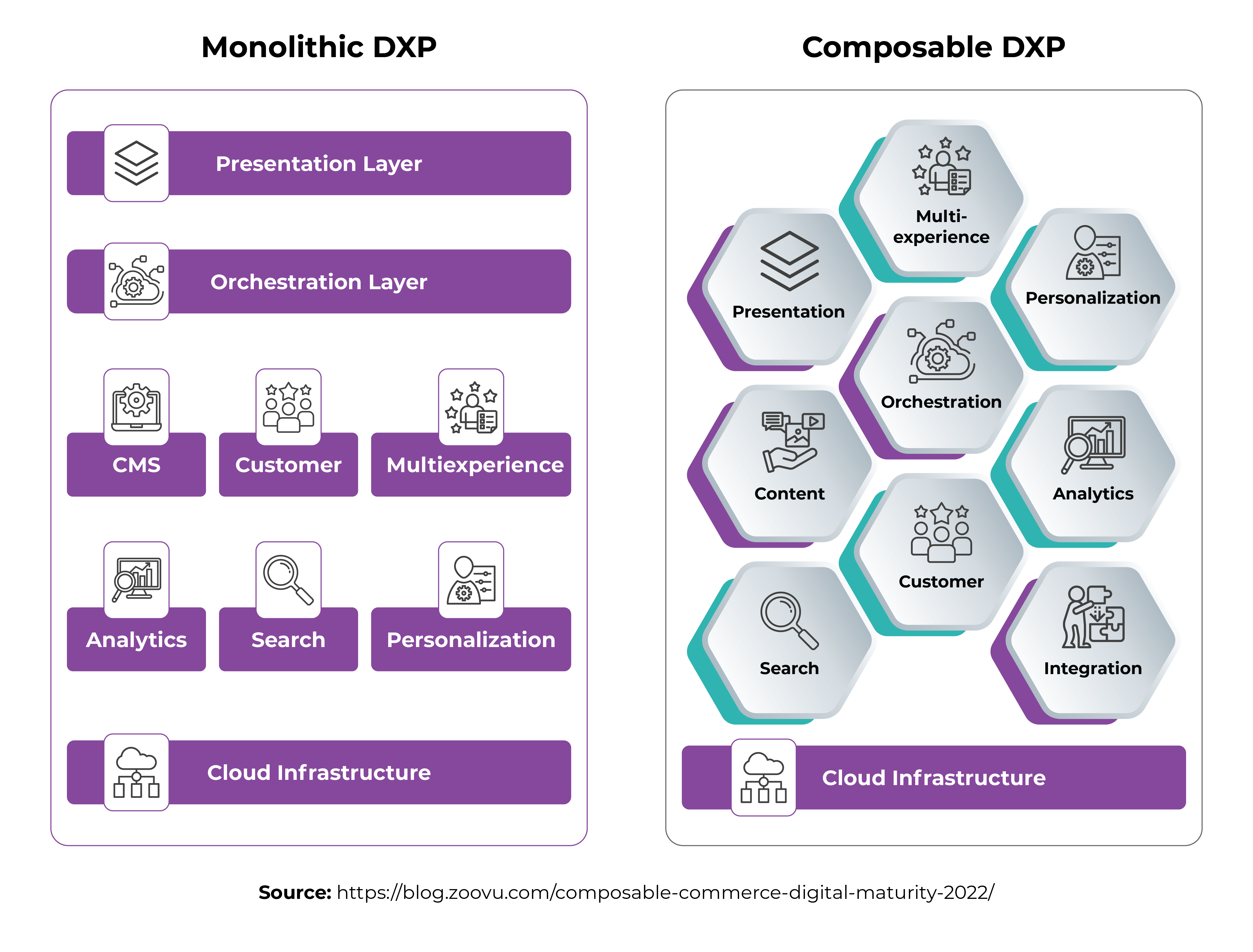 With a monolithic platform, modifications require extensive changes to the entire system, limiting flexibility and responsiveness. In contrast, composable commerce enables easy adaptability and scalability. You can add, remove, or replace modules without affecting the entire structure, just like assembling a house using modular components.