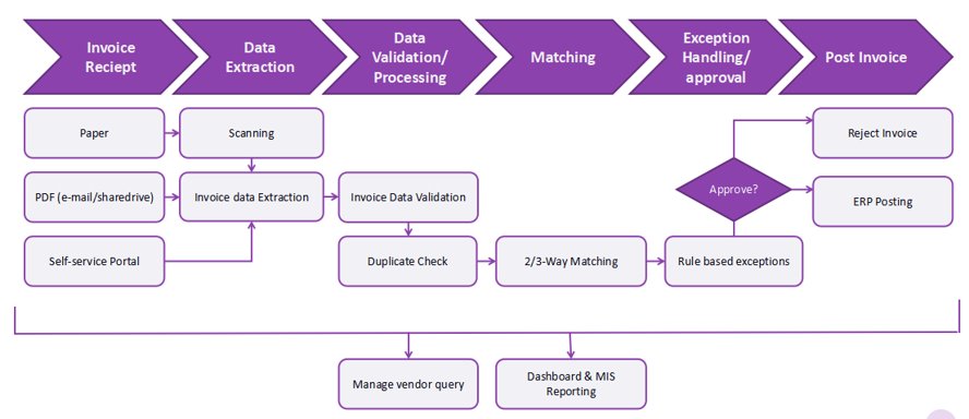 Some use cases in the accounts payable process where RPA and AI can be applied to eliminate payment delays and mitigate human errors: