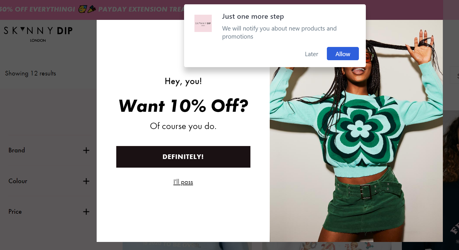 Christmas is a season for inspiration, so help your customers out by exhibiting what other customers have watched or purchased over the holiday season. This raises FOMO while also creating a sense of social validation! Skinny Dip, Cox & Cox has devised a unique strategy to reduce the likelihood of customers jumping to another website.