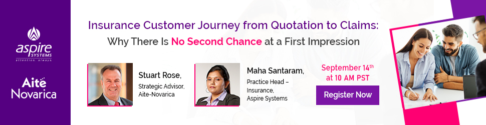 A joint effort by Aspire Systems and Aite Novarica, the session on September 14th, 10am PST, will have experts discuss the latest trends in various insurance segments, AI & how it is being adapted by insurers across the globe, use of AI in claims management solutions, streamlining underwriting process with AI tools. It will also give insights on the priorities insurers have set for themselves. The webinar will also teach you to use data and AI to determine the best actions along insurance customer journeys with new-age tech.AI in insurance: Experts answer questions about the changing insurtech landscape.