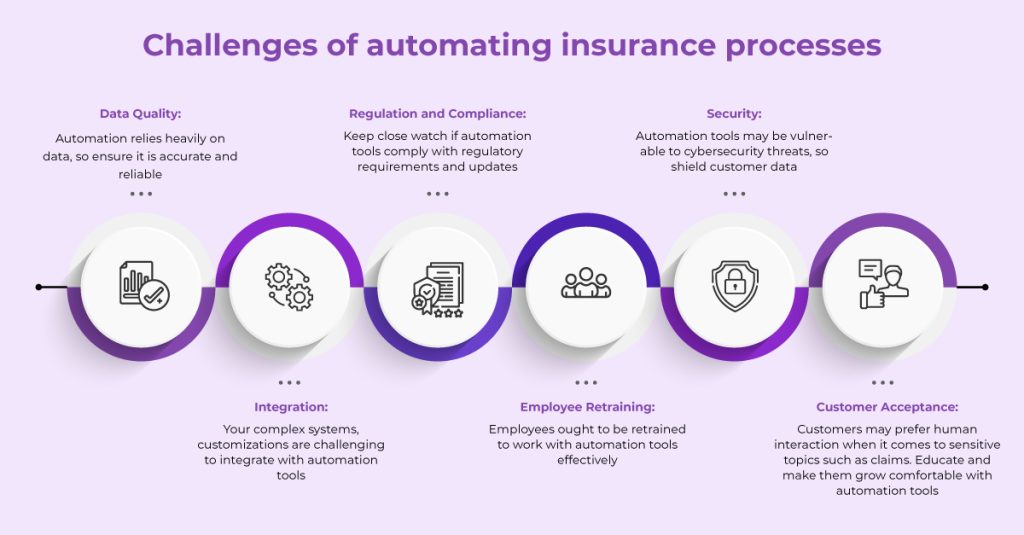 Now, while automation in the insurance industry offers numerous benefits, there are also some challenges that insurers should overcome to ensure successful implementation.