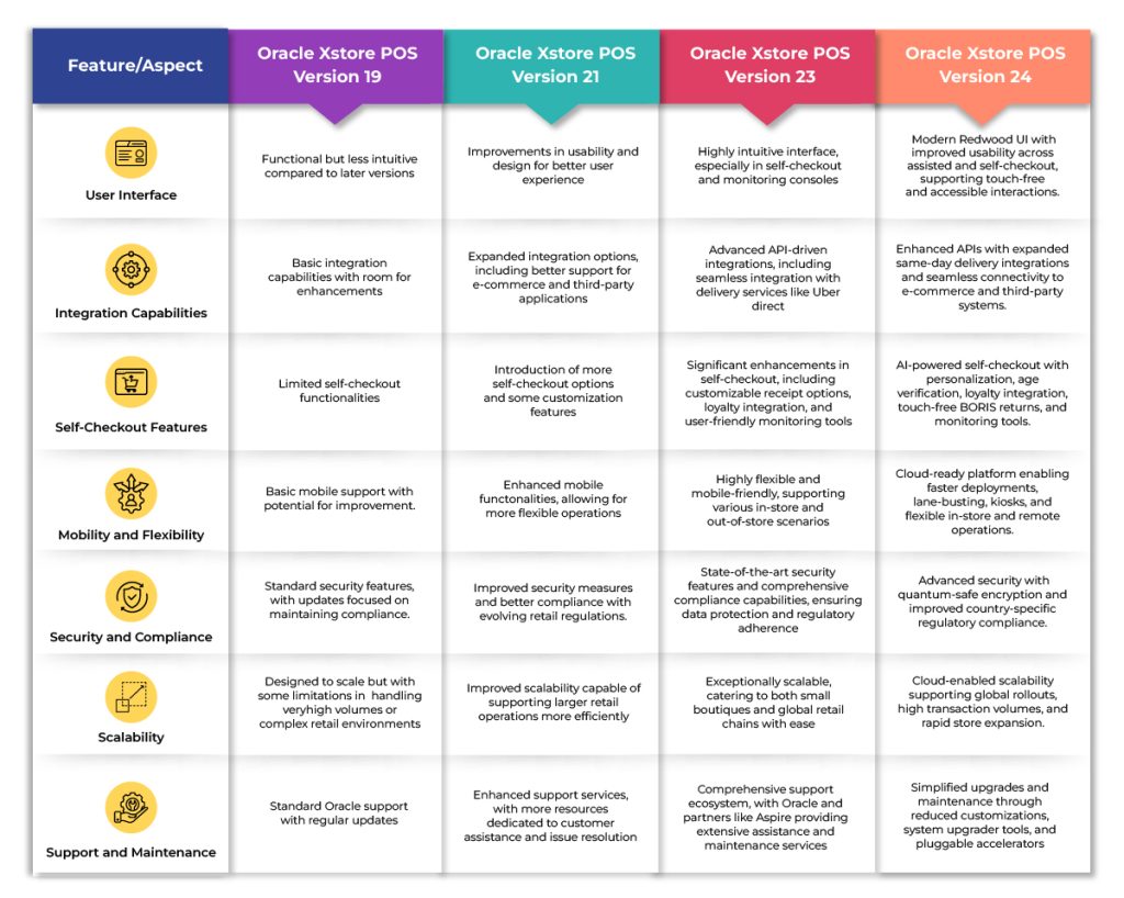 - Scalability: Oracle Xstore POS Version 24 scales with business growth across new locations and transaction volumes.