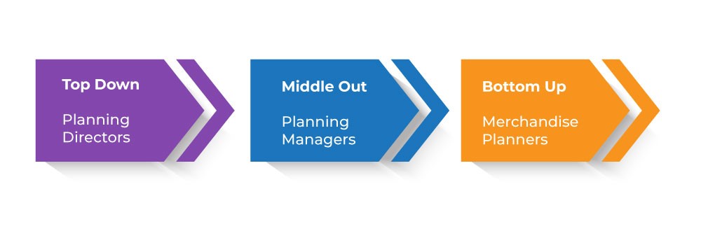 Before delving deeper into MFP, let’s take a quick look at the three fundamental approaches: top-down, middle-out, and bottom-up. The diagram below illustrates the foundational structure of the MFP approach: