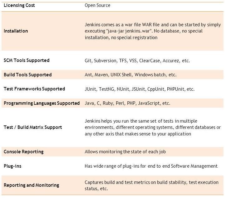 If it is Continuous integration, then the marriage with Jenkins is made in heaven. Jenkins is a java based Continuous Integration Tool and it has its own capabilities, features, and strengths