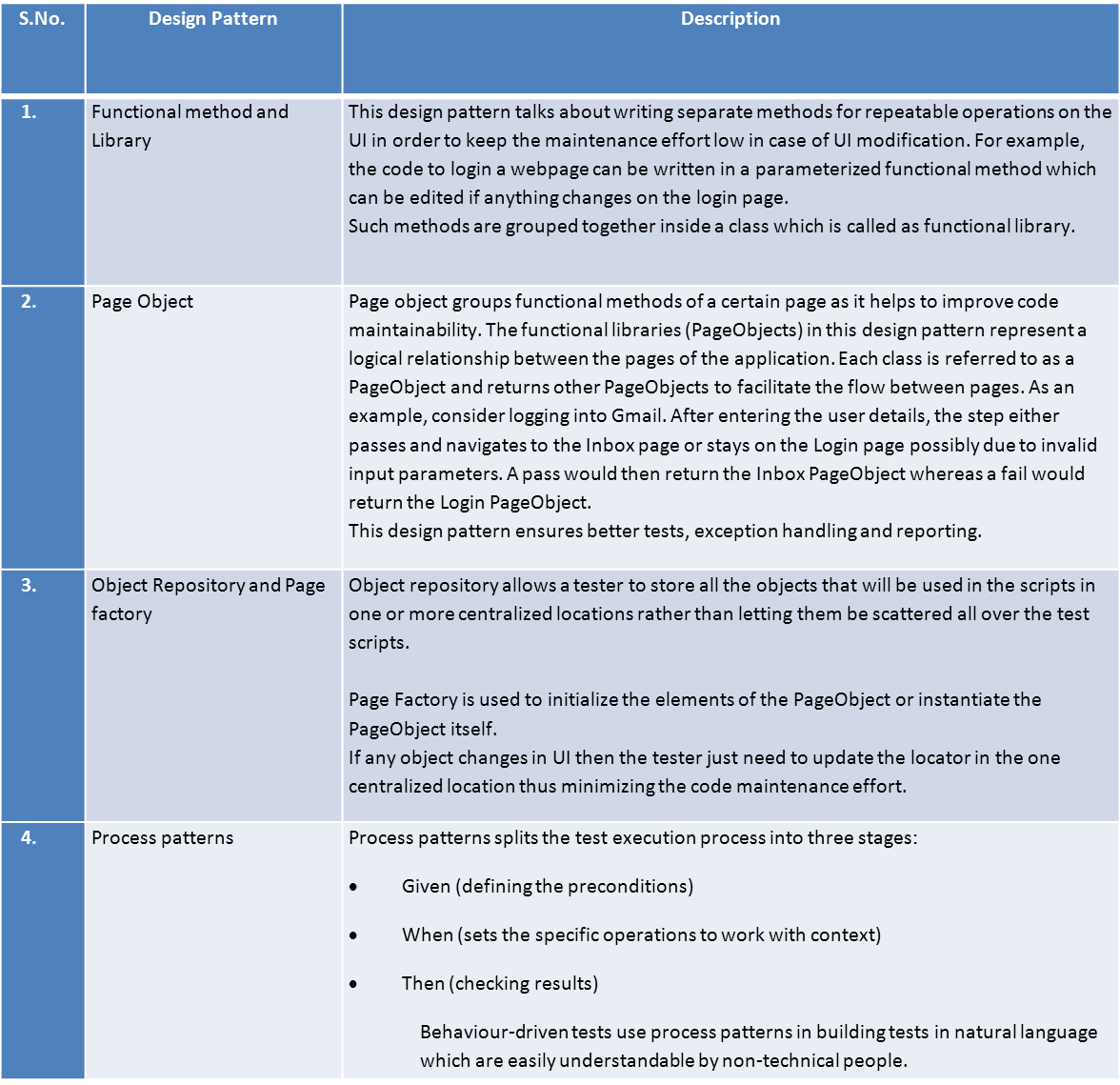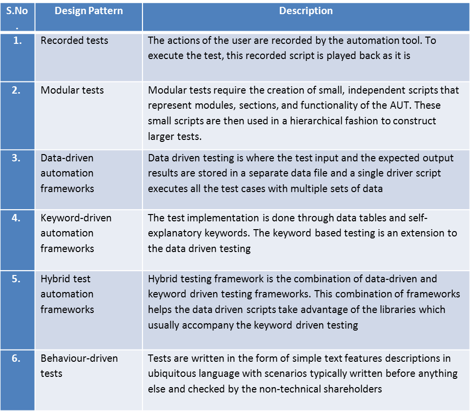 Design Patterns in Test Automation World- Table- Pic 1