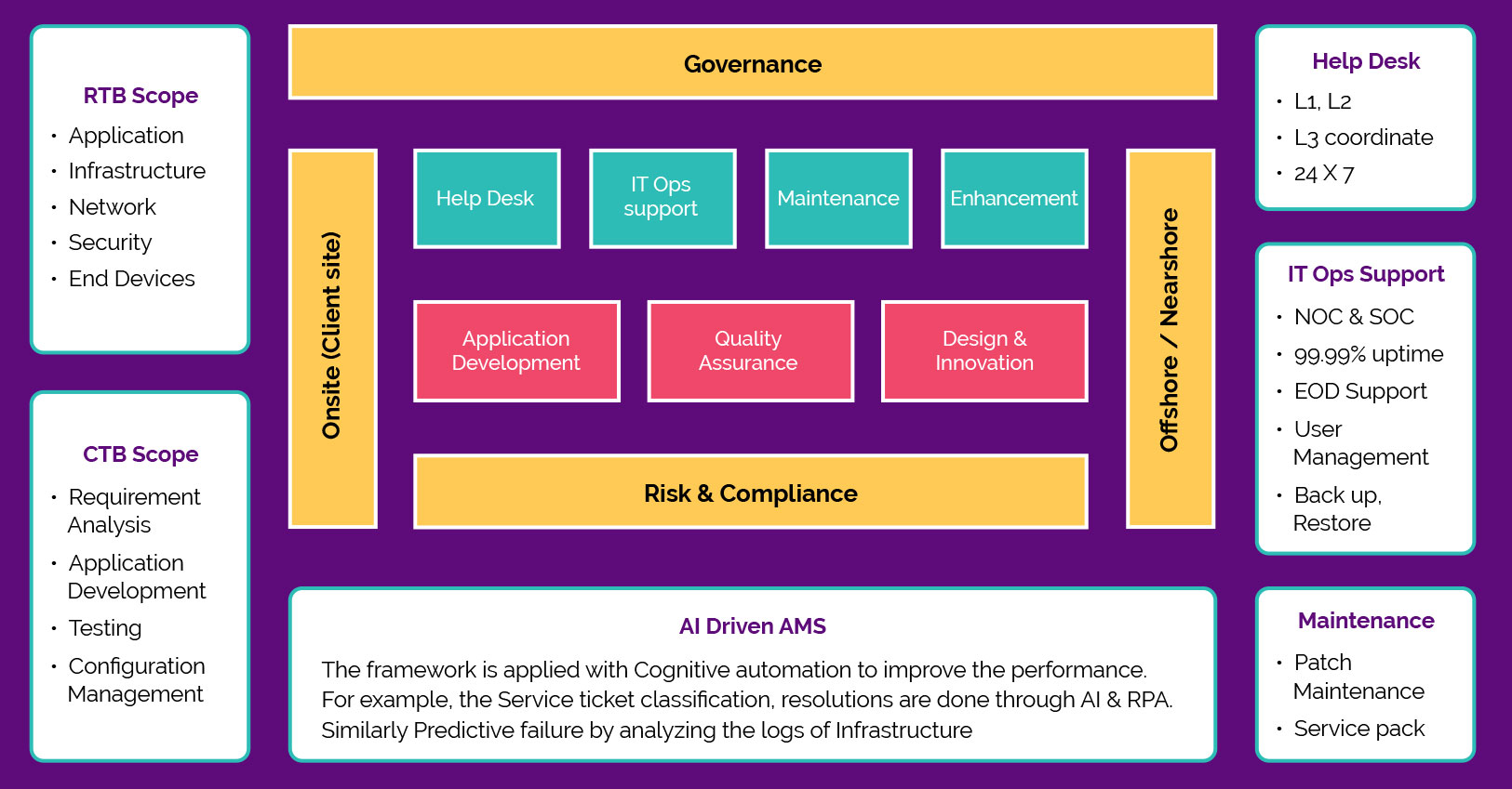 Aspire’s high-level building blocks of an Application Management System covering end-to-end services required for seamless maintenance and support.